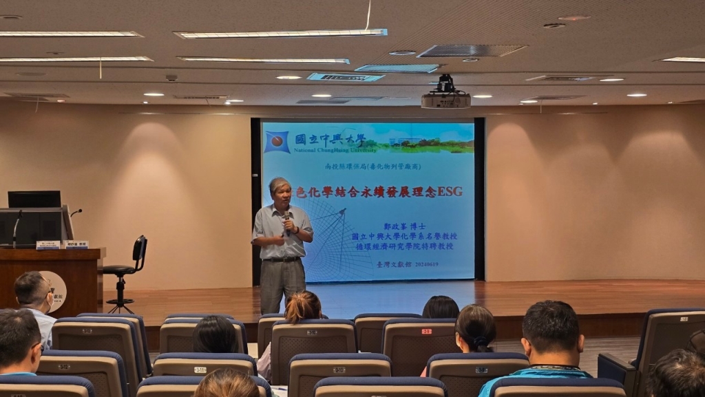 本次活動邀請到國立中興大學循環經濟研究學院的鄭政峯教授作為主要講師,他深入淺出地講解了綠色化學結合永續發展理念的實踐方法,並分享了多項成功案例,受到與會者的高度讚揚。
