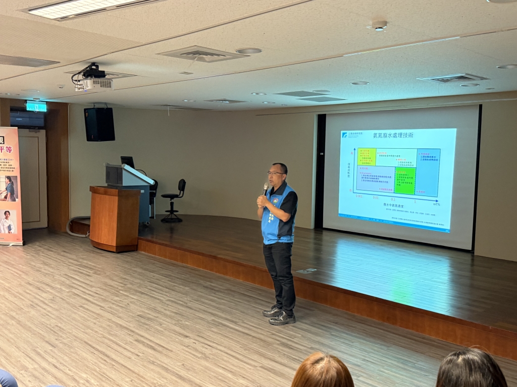 環保局針對環境部113年12月18日修正放流水標準項目進行說明,自116年起針對氨氮、總磷、銅及自由有效餘氯等放流水項目全面加嚴,並依行業別至120年逐年提升標準,同時新增部分行業須申報總氮、總磷等水質項目。另針對新興污染議題,自116年起特定事業及污水下水道系統須每年檢測藥物類(如乙醯胺酚、紅黴素、磺胺甲噁唑等)與PFAS(如PFOS、PFOA等全氟/多氟烷機物質)等新興關注項目;另外特別邀請工業技術研究院黃盟舜博士進行「廢水處理與循環再生利用」專題分享,從國內外趨勢切入,介紹多項低碳與資源化關鍵技術,包括將磷酸廢液由 10% 濃縮至 60% 並產出高品質回收水的薄膜蒸餾(MD)技術、以流體化床促進磷結晶回收的 FBC 技術、高 COD 廢水可產沼氣供能源化利用的 UASB、AFB 與 Anammox 厭氧處理系統,以及運用即時監測與感測設備提升處理效率的智能化水務管理平台,亦分享 BioNET 生物網膜、CDI 低耗能電容脫鹽、EDR 反極電透析等多項創新水處理技術。藉由完整的案例與實廠成果,協助業者掌握如何將廢水視為可再利用資源,並以循環經濟思維降低處理成本、朝向低碳與智慧化的永續治理方向邁進。