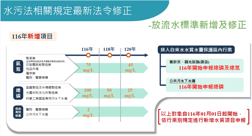 環保局長李易書表示,面對淨零排放與回收水之環境品質提升的雙重挑戰,南投縣加強輔導列管事業導入智慧監控、綠色技術與資源回收,以實現 SDG 6 淨水與衛生、SDG 9 產業與創新、SDG 13 氣候行動的永續願景。同時也提醒轄內業者,自116 年起多項放流水標準將大幅加嚴,部分行業亦新增總磷、總氮等申報項目,事業應儘早檢視既有廢水處理設備能力與改善需求,必要時提前與專業技師規劃系統調整或增能工程,並同步留意水污防治許可內容是否需變更,以避免違反相關法令規定。